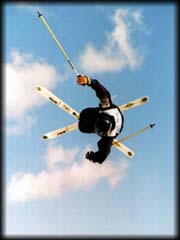 おそらく日本人で初めてサイドフリップをモーグルコース行う。